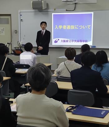 本校の学校生活の様子や卒業生の声を紹介する動画をご覧いただき、本校の昼夜間単位制のシステムや進路指導、入試の内容について説明させていただきました。
