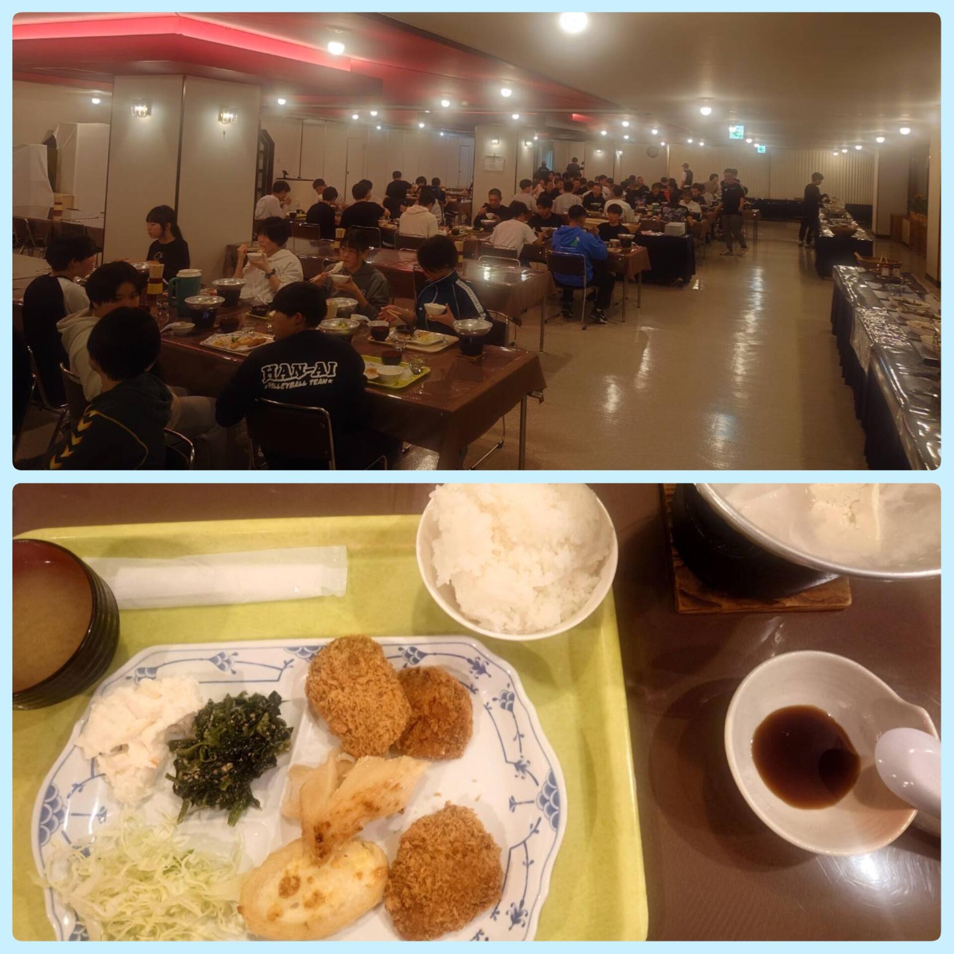 午後の講習が終わり、入浴と班ミーティングのあとは待ちに待った夕食です。バイキングに加えてしゃぶしゃぶが1人に1個あります。