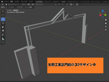 青写真の寸法をもとにBlenderで正門の3Dモデル制作に挑戦しています。