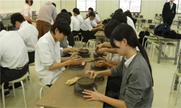 10月22日(水)1年セラミック科の生徒達は、実地研修として日本六古窯の一つである丹波立杭焼の里(兵庫県篠山市今田)を訪問しました。生憎の強い雨と師走並みの低気温にはばまれ、思うように散策はできませんでしたが、工房『窯元やまの』では電動ろくろ成形の見学と地場産の粘土を使用した茶碗などの制作に取り組みました。本校で使用している粘土とは肌触りや焼成温度も異なり、1月に届く予定の完成品をみんな楽しみにしています。