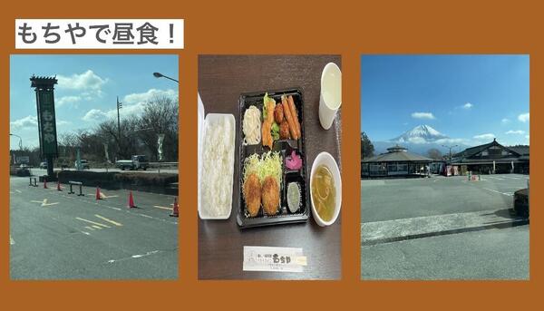 もちや朝霧館にて昼食をとりました。 ここでは富士山を眺めながら食事ができます。 食事の後は富士山絶景撮影スポットでクラス写真を撮り、静岡のお土産を買います。