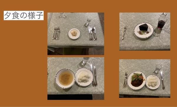 夕食の時間です。 分宿のオーナーの腕によりをかけた和を取り入れた創作フレンチのフルコースを、テーブルマナーを教えていただきながらいただきます。 各宿ごとにメニューが違いますので、お土産話としてお子様に聞いてみてください。