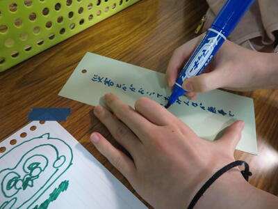 生徒におもいおもいの願いを書いてもらっています。