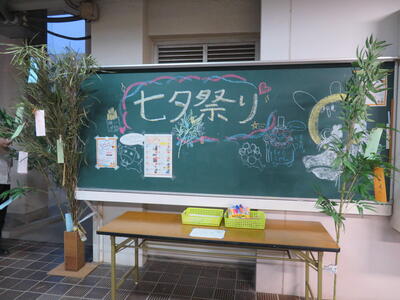 本校では、七夕まつりにちなんで3日から7日まで、ピロティに笹を用意し、
