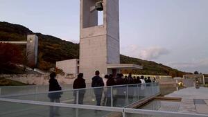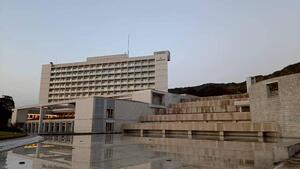 宿泊先のホテルは、建築家の安藤忠雄氏が設計されたグランドニッコー淡路です。夕食前には全員で館内見学を行い、「海の教会」はじめとする自然光を巧みに取り入れた空間設計や、コンクリート打ち放しの素材感を活かした建築美を感じることができました。夕食は生徒みんなで円卓を囲み楽しく食事をする事ができ、普段学校では見れない生徒達の一面を見ることができた時間となりました。明日はニジゲンノモリでたくさん楽しめるように、しっかり休息をとってくださいね!