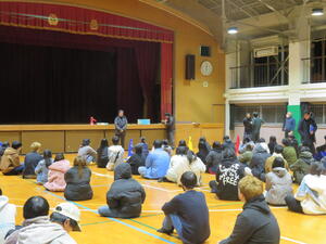 16日(火)、本校では、防災アドバイザーの羽藤様をお招きし、地震と津波を想定した防災避難訓練を実施いたしました。 訓練は地震が発生したことを告げる校内アナウンスとともに始まり、生徒たちは担任の先生の指示のもと、みな真剣な面持ちで中グラウンドまで向かっていました。 中グラウンドに集合したのち、津波を想定し高い場所(3階体育館)まで逃げる訓練もあわせて実施しました。 体育館では、防災アドバイザーの羽藤...