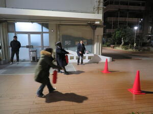 本校では、1月15日、消火訓練とロープワーク実習を2班に分かれて行いました。