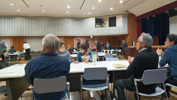 阿倍野区防災事業計画や発災時における区役所の初期初動体制についての説明を受けました。その後、地域の避難所施設管理者との意見交換を行いました。