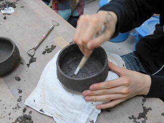 3年生が受講しているクラフト全般では陶芸作品に取り組んでいます。 手びねりや電動ろくろを使用して、お茶碗や湯呑を作りながら陶芸の技術を学びます。 授業を見学したときは抹茶椀を制作中で、椀の形や内側を削る作業を行っていました。 この先も、乾燥・素焼き・釉掛け・本焼きと複数の過程を行い完成となります。 焼き上がって完成したものは、またブログにアップします。完成をお楽しみに~☺