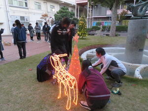 全日制・定時制双方の生徒会が協力して、校内の中庭をクリスマス仕様に飾り付け! とても寒い中での作業でしたが、うまく役割を分担して綺麗に仕上げていきました。 夜にライトアップするとこんな感じ! 全日制の生徒も定時制の生徒も、中庭まで足を運んで写真撮影などを楽しんでいましたよ。 中庭のイルミネーションは12月24日(火)までの期間限定ですので、まだ見ていない人はぜひ一度見に行って...