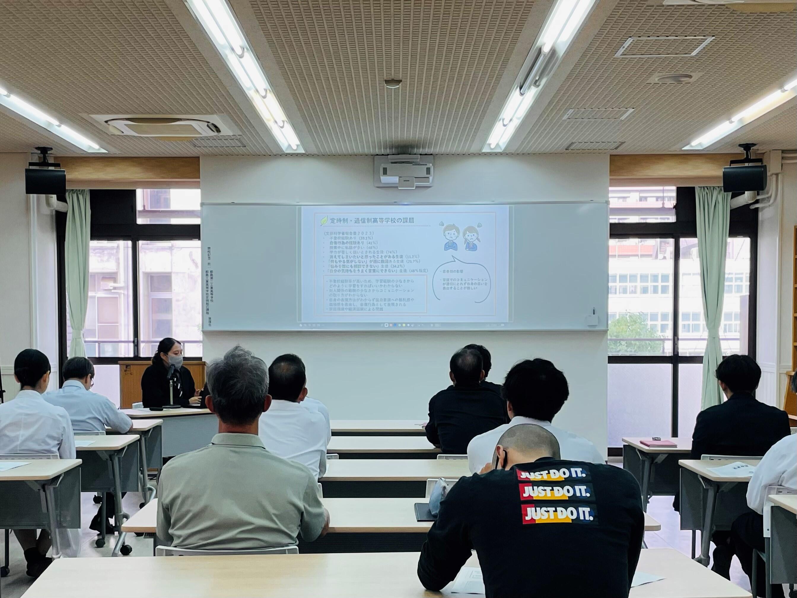 「生徒とよりよい関係をきずくために」というテーマで、定時制高校の現状や現代の子どもたちの傾向をふまえ、「聴く」ことの大切さについて話をしていただきました。