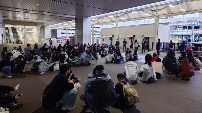 修学旅行団の集合の様子を掲載します。 欠席者無しでみんな元気に出発しました。表示