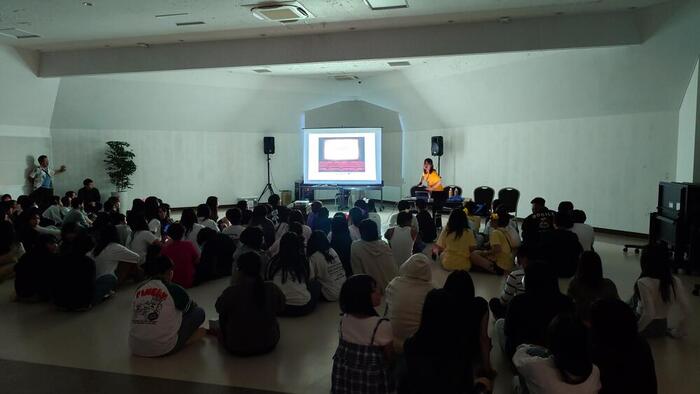 レクリエーションは、男子有志による「嵐」のパフォーマンスに始まり、先生方の歌、全員参加のクイズ大会、ラストは入学後の高校生活を振り返る動画が流れ、見ている生徒も、作った先生も涙々のフィナーレとなる、あっという間の一時間でした。 9:00から就寝の10:30まで自由時間となり、明日は美ら海水族館と国際通り散策となります。