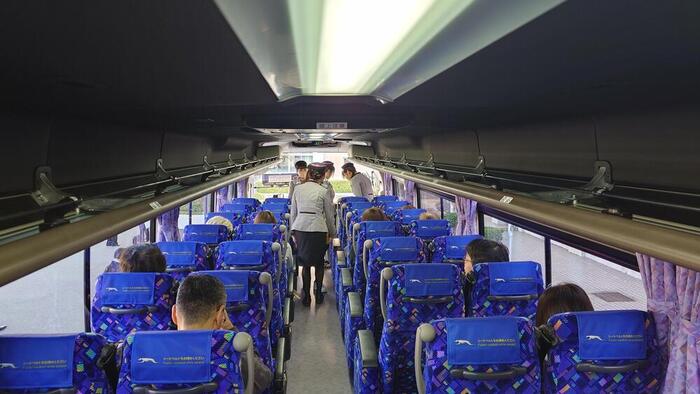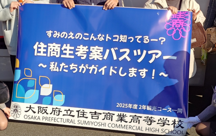 今日、22日(土)は2年生観光コースが企画したバスツアーの日です。 昼食をはさんで住吉大社やATCをめぐって行きます。 バスの中では、バスガイドの制服に着替えた生徒たちが出発準備に忙しそうです。