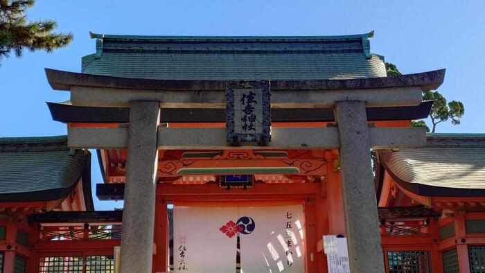 バスツアー最初の訪問地、住吉大社に来ました。 案内役の生徒たちの説明を聞きながら住吉大社を散策しました。