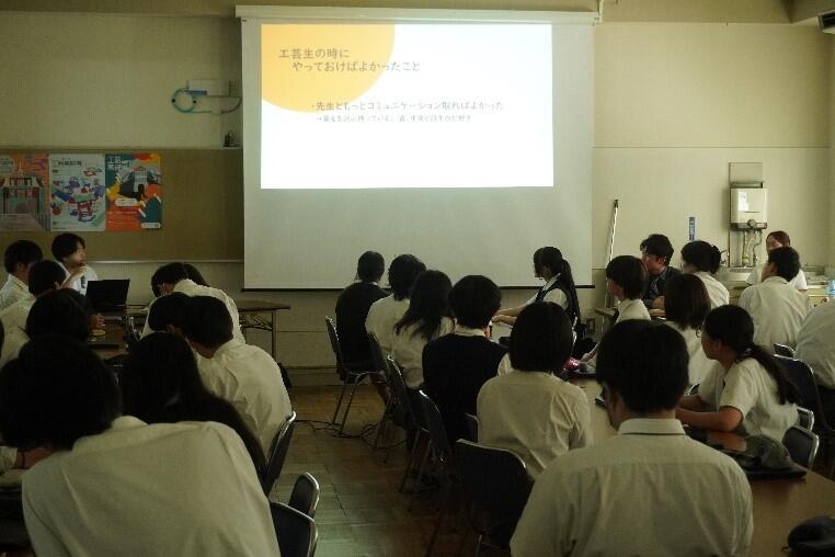 2年生を対象に進路指導の一環として、現役大学生の方、高校卒業して就職した方、大学卒業して入社1年目の方を招いて、先輩講座を実施しました。現在、2年生は卒業後の進路を決定するために、各自悩みながら大学のオープンキャンパスに参加したり、求人票を閲覧したりと学校の課題に取り組みながら進めています。この講座を通して、自分自身と向き合い、将来何がしたいかを考え、進路の選択をしてほしいですね。後悔がないように精一杯頑張りましょう!