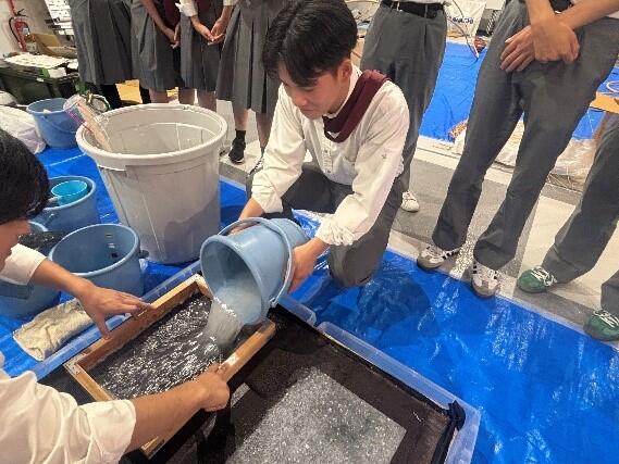 「建築学生ワークショップ E X P O 2 0 2 5 地元高校生×全国大学生 交流会」に校外学習として参加しました。各地から集まった大学生たちがグループで、約半年間かけて、「いのち輝く未来社会のデザイン」をテーマで大阪・関西万博会場内に小さな建築を実寸で制作する内容でした。その事前プレゼン発表を鑑賞し、制作している大学生に質問や体験などを通して、とても有意義な時間を過ごせました。