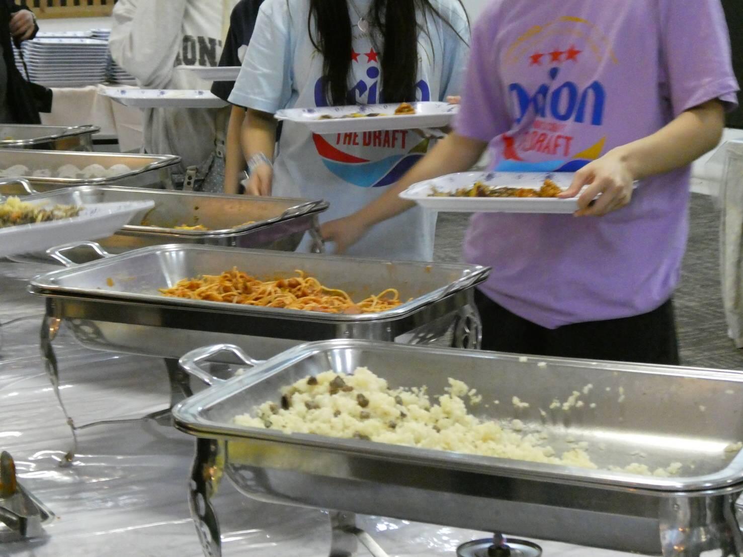 旅の疲れを感じさせないほど、生徒たちは笑顔で食事を満喫していました。