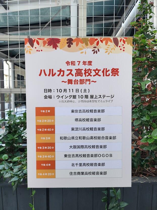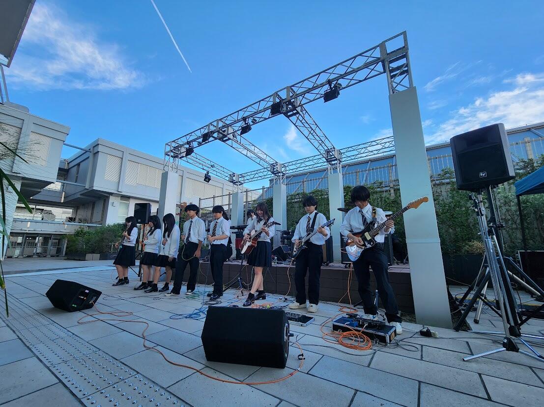 【軽音楽部 報告】<産学連携地域イベント>10月11日ハルカスウイング館屋上ステージで行なわれた「ハルカス高校文化祭」の舞台部門1日めに参加してきました。住商軽音楽部はハルカスさんとの産学連携ステージイベントの幹事クラブとしてスタッフと演奏をしました。午前のステージ設営時に雨が降りはじめ、野外のためどうなるかとみんなで不安になりましたが、開演の頃にはすっかり晴天。楽しく心地よいライブとなりました。次回のハルカスは10月18日です。ぜひ、ご観覧に来てください!