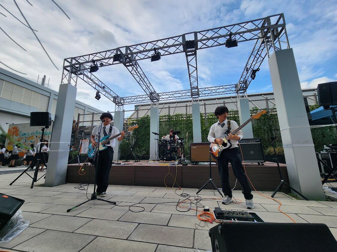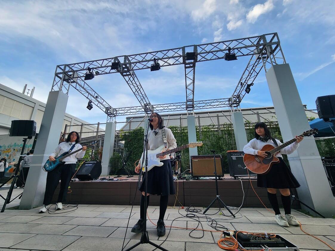 【軽音楽部 報告】<産学連携地域イベント>10月18日ハルカスウイング館屋上ステージで行なわれた「ハルカス高校文化祭」の舞台部門2日めに参加してきました。住商軽音楽部はハルカスさんとの産学連携ステージイベントの幹事クラブとしてスタッフと演奏をしました。今回も午前のステージ設営時に雨が降りはじめましたが、開演時から天気は好転、今日も楽しい演奏会となりました。次回のハルカスは10月25日です。ぜひ、ご観覧に来てください!