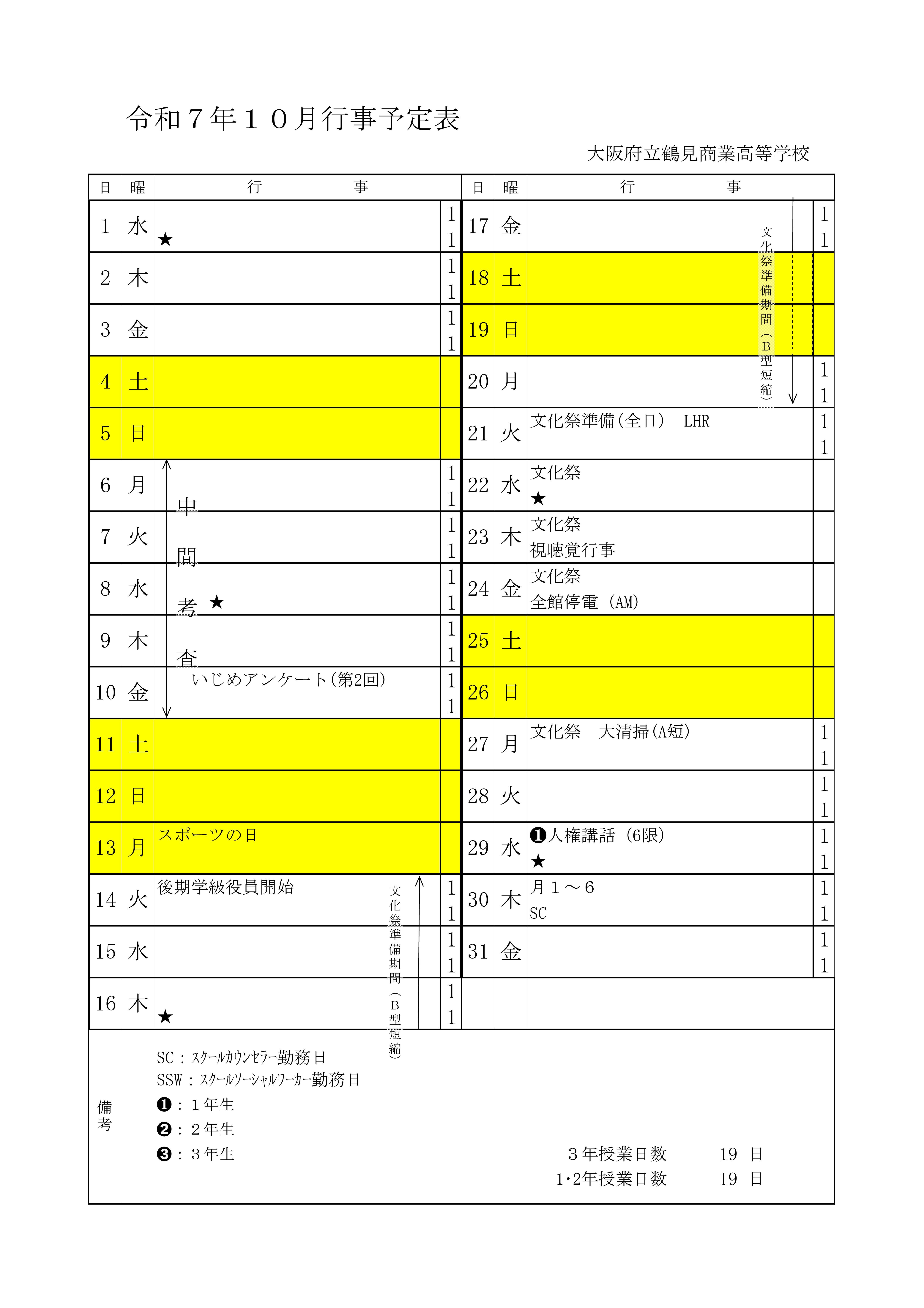 10月行事予定について