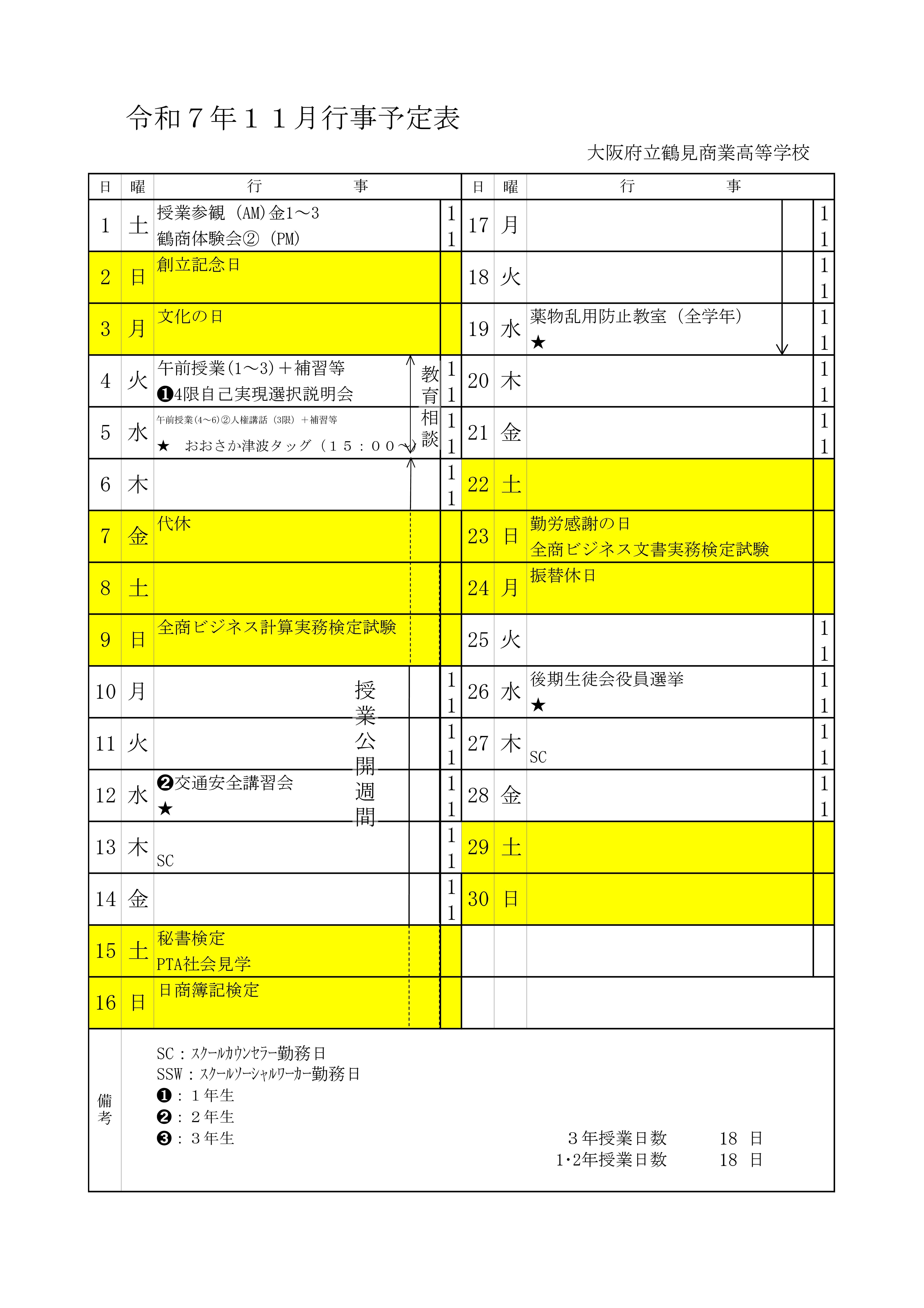先にお知らせしております授業参観等の日程が入っております。ご確認ください。
