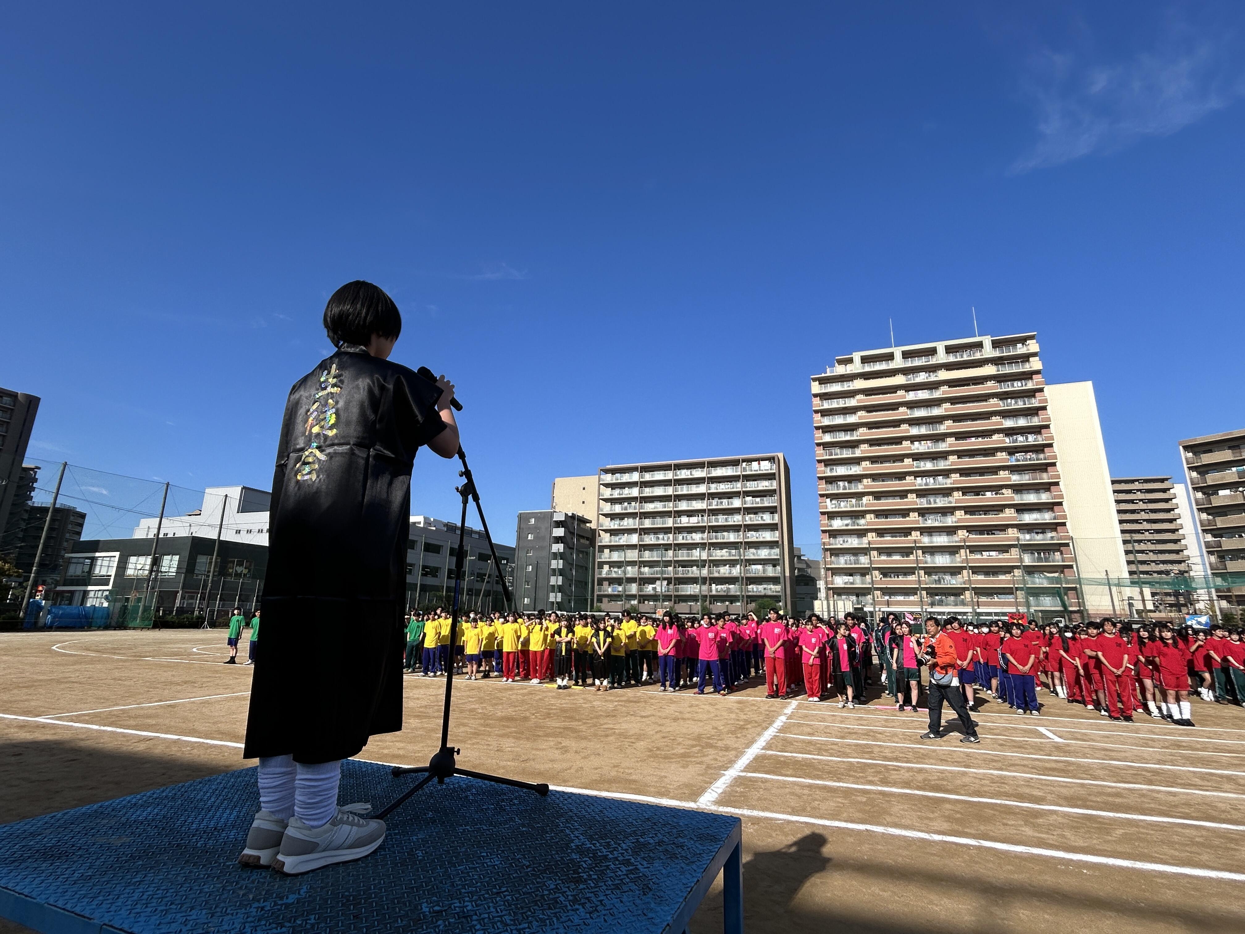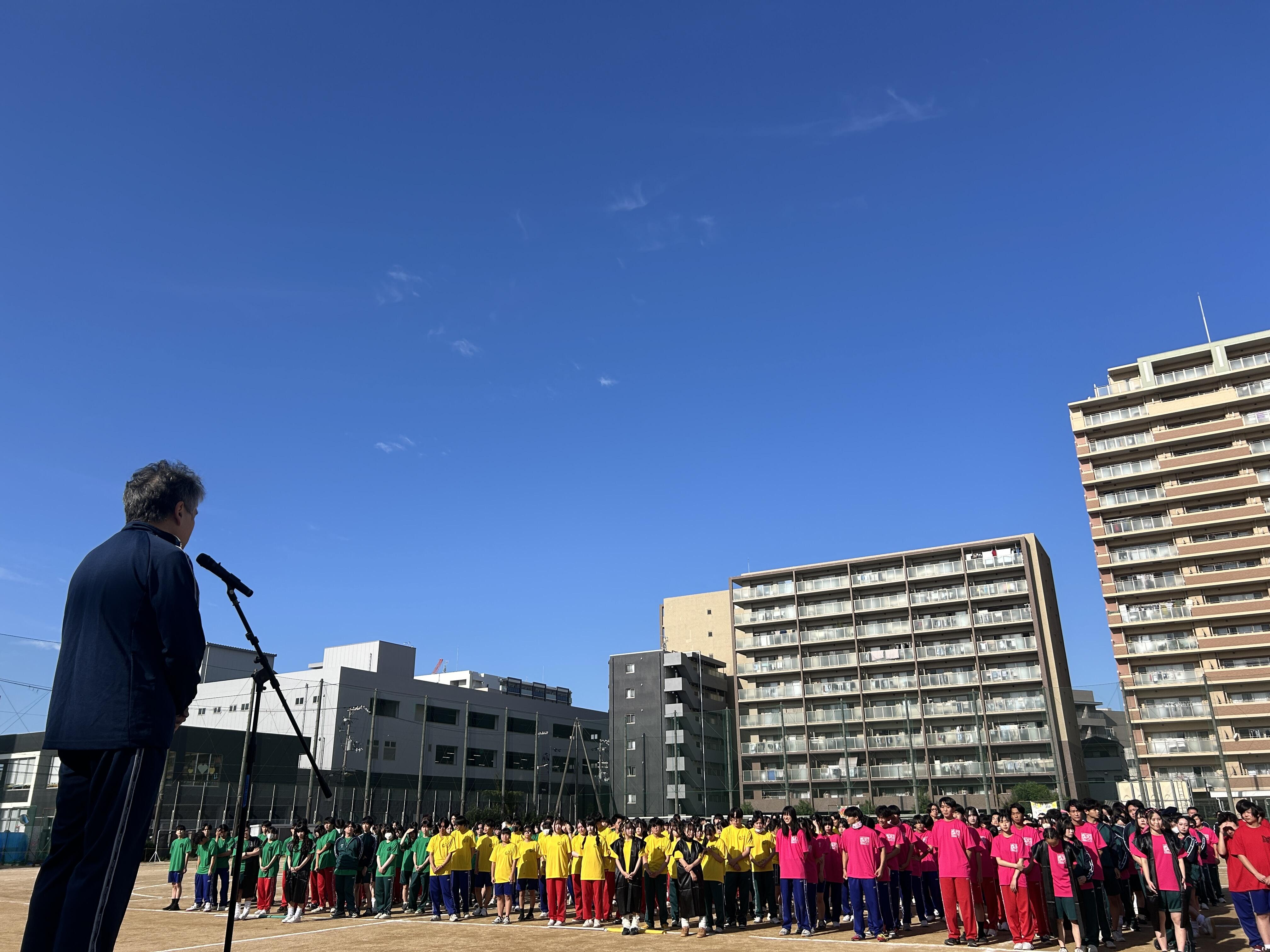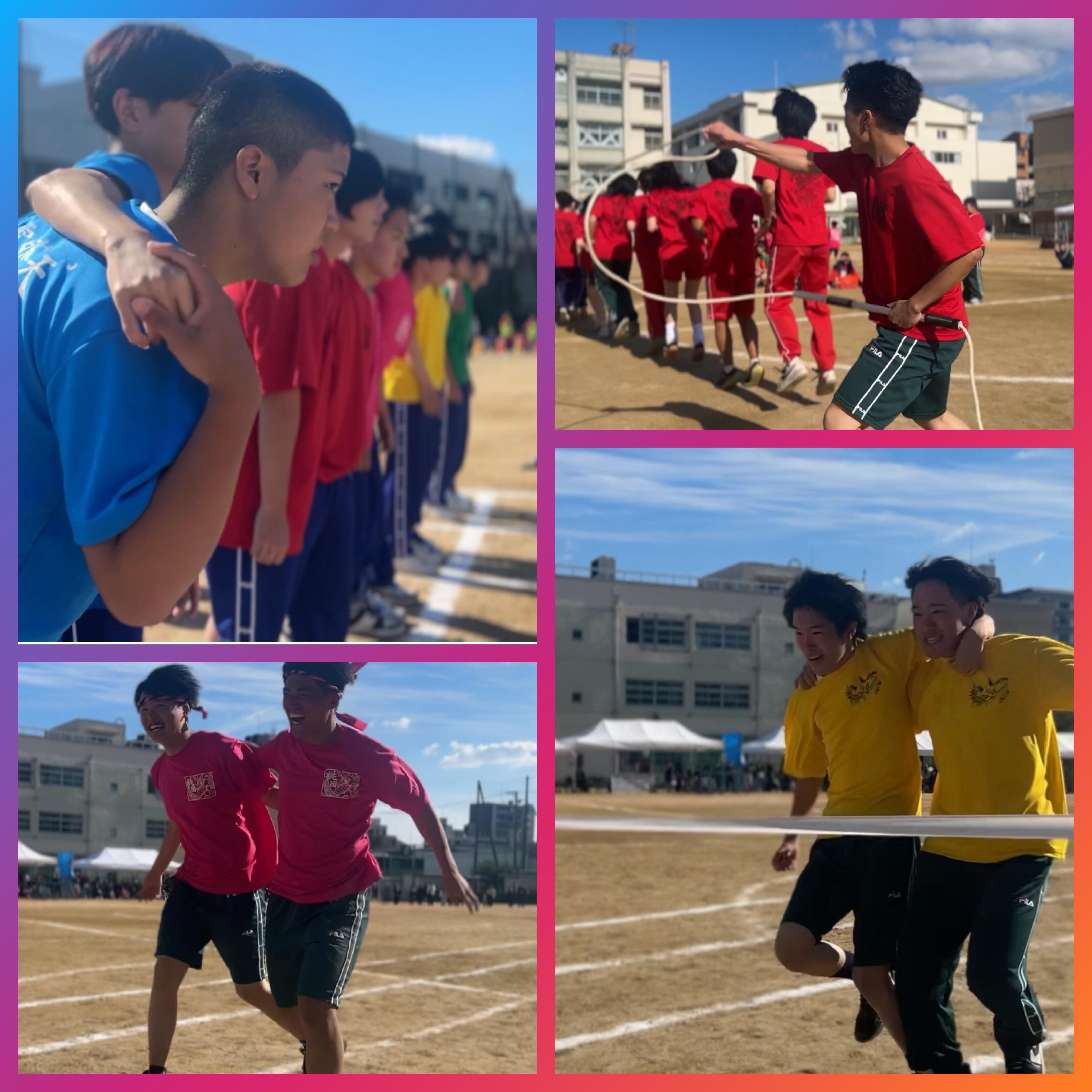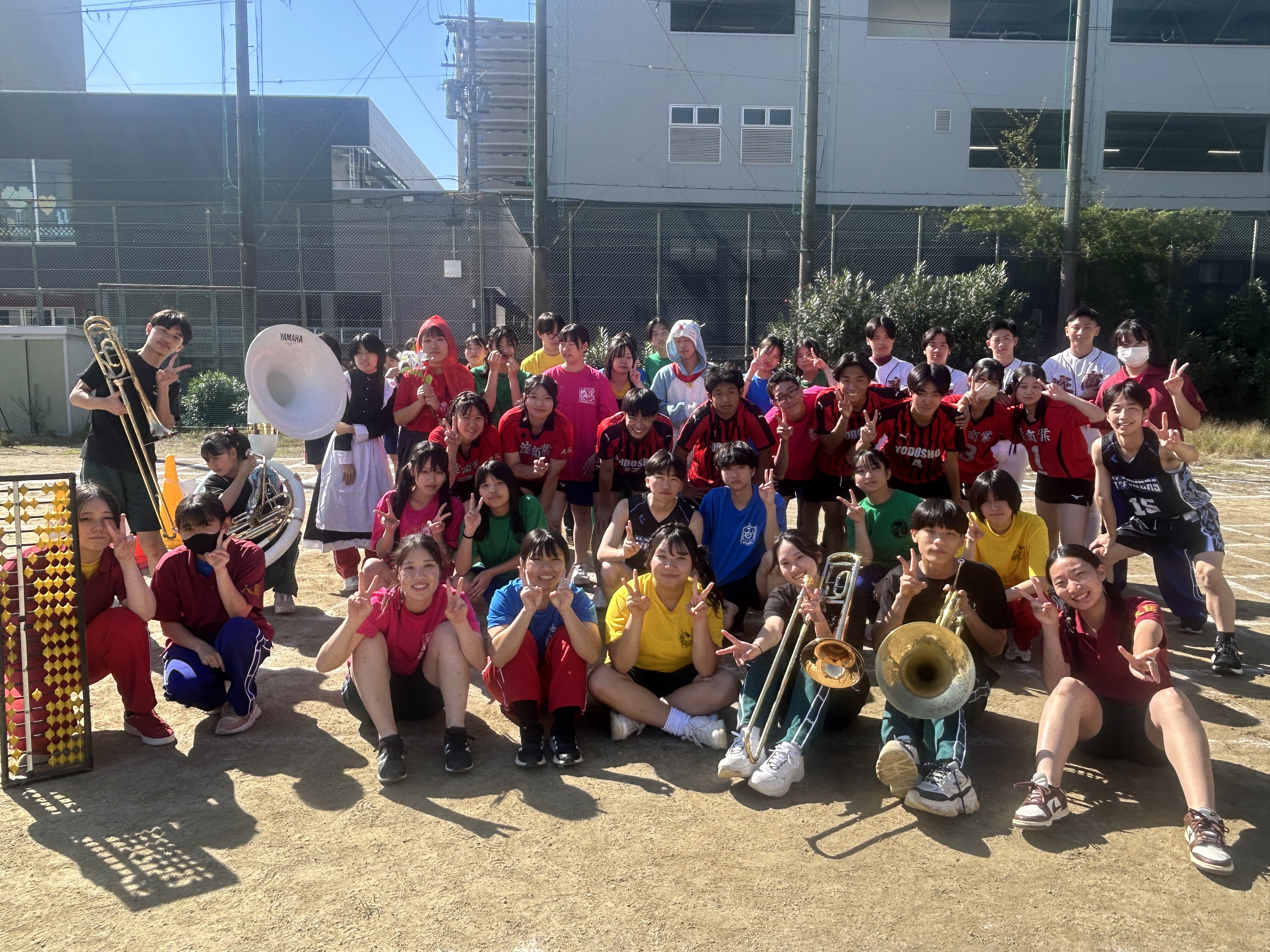 真っ青の青空の下で、待ちに待った淀商フェスティバルが開催されました! まずは体育祭!グラウンドに各団カラーTシャツが輝いていました! 日差しは心地よい暖かさで、みんなも笑顔がはじけていました! どの競技もとっても楽しそうでした!