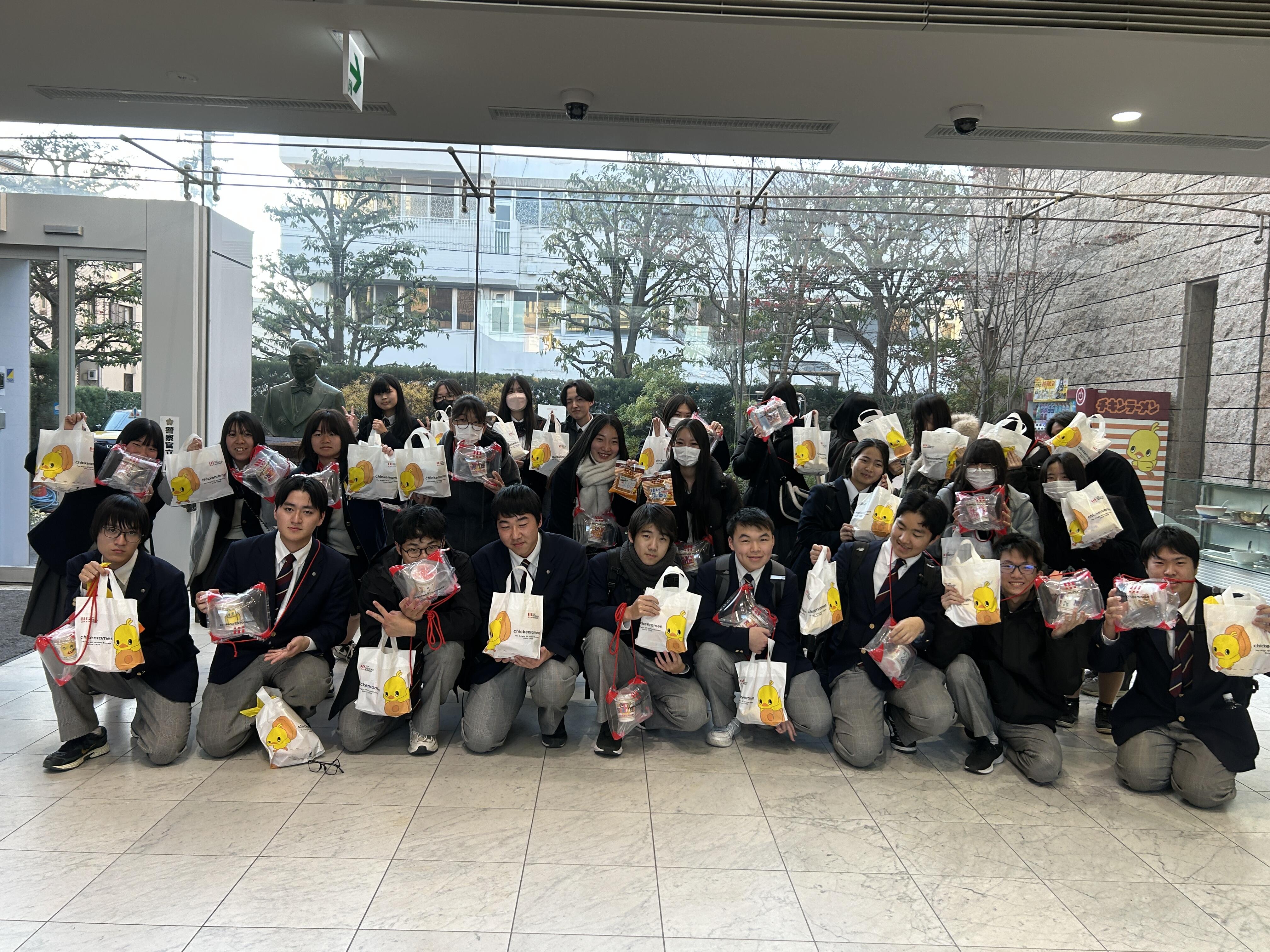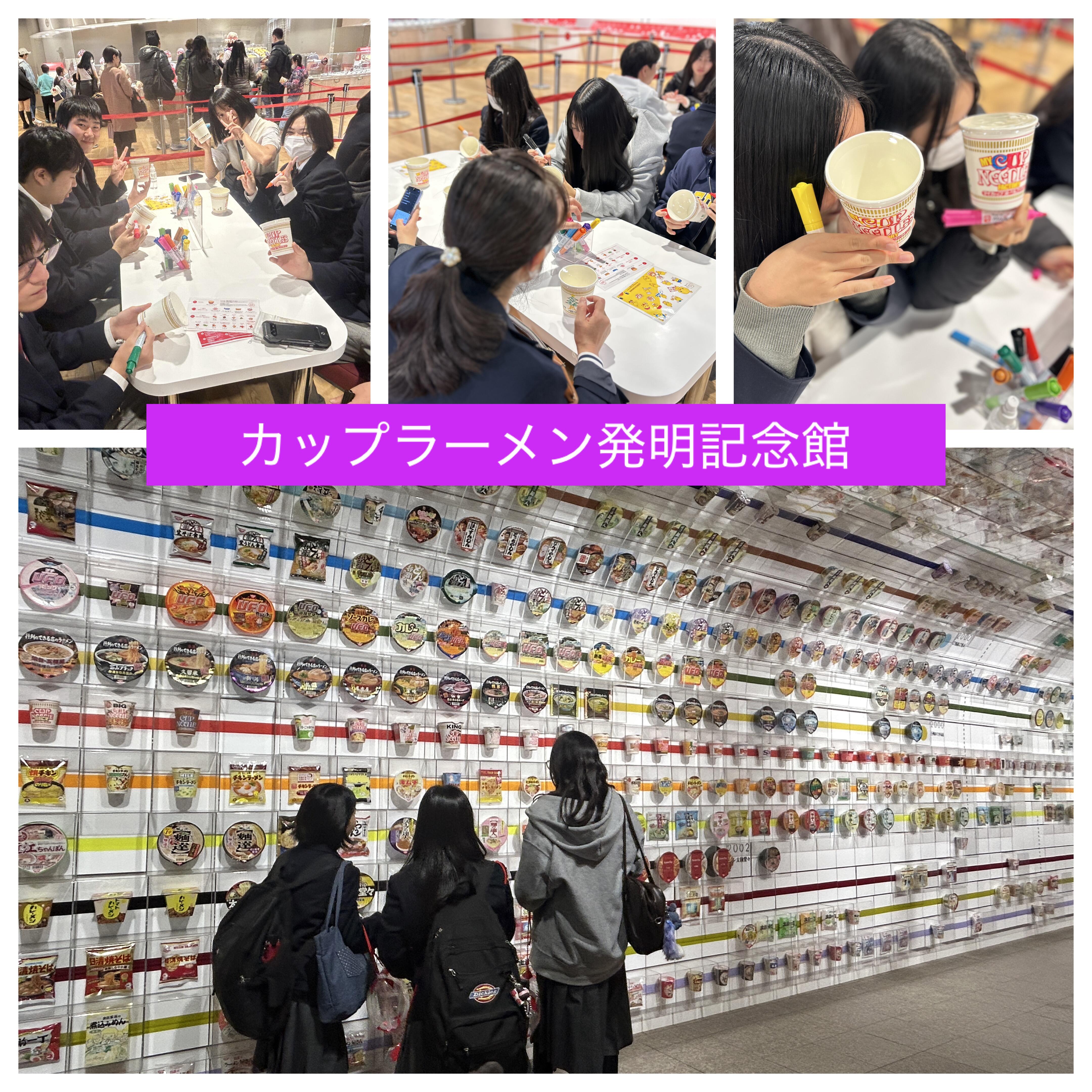 知財力開発支援事業の課外活動として、池田市にあるカップラーメン発明記念館へ社会見学に行きました。