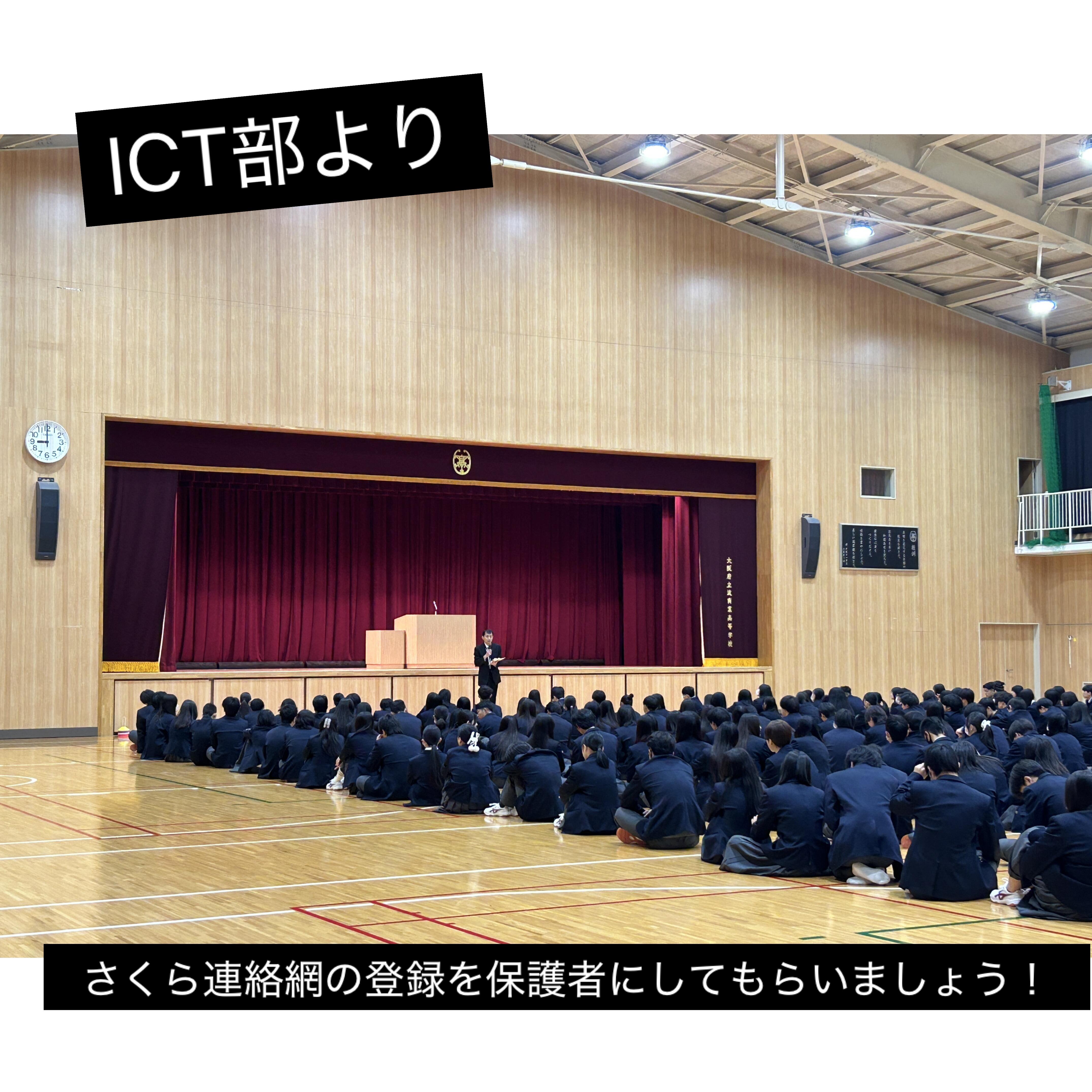⚫︎4月から8時30分登校。8時30分以降の登校は遅刻。 ⚫︎1限目の開始が、8時50分からになります。 ⚫︎体育祭が5月に開催されます。 ⚫︎保護者への連絡、保護者からの欠席連絡は、さくら連絡網で行います。お子様がお持ち帰りましたプリントの手順で申し込みをお願いします。